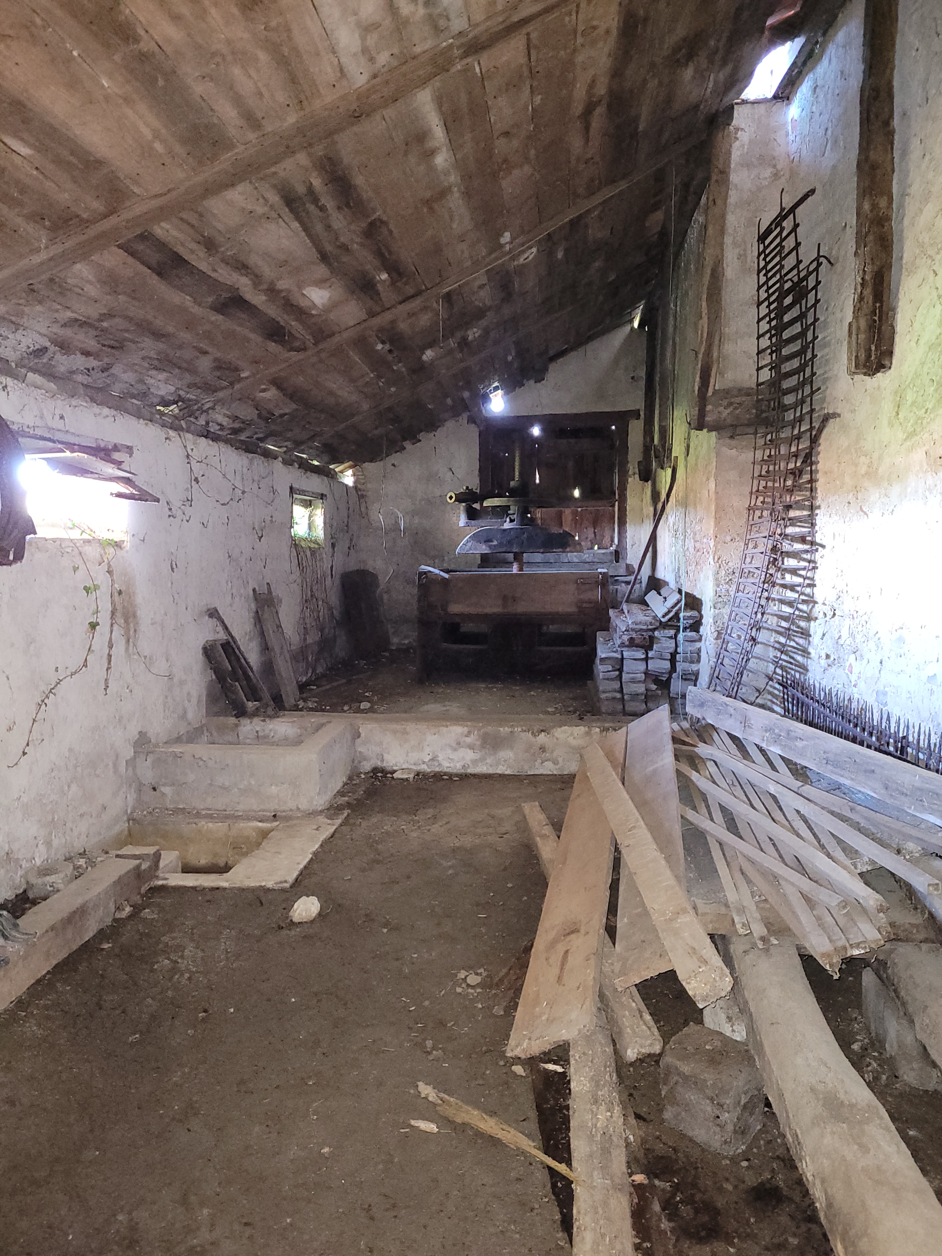 La forge, détruite, a été reconstruite à partir de photographies d’archives, restituant fidèlement sa volumétrie et son implantation au sein du hameau. Dans l’ancienne étable, une grande verrière en toiture a été introduite pour apporter la lumière naturelle dans un espace autrefois sombre — seule intervention franche dans un projet qui a cherché, partout ailleurs, à faire le moins possible pour que le bâtiment retrouve sa place et sa dignité.
